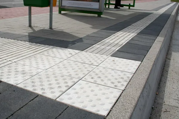 - Noppenplatten / Aufmerksamkeitsfelder: Warnen vor Gefahrenstellen wie Treppen, Bahnsteigen oder Einfahrten.